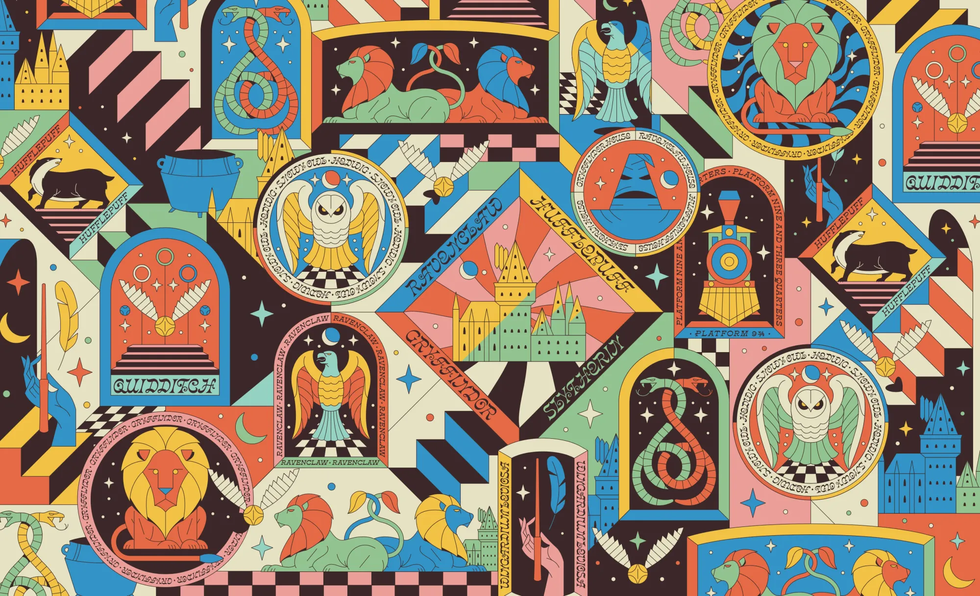 Mattson Creative’s Russ Gray designed a global packaging system for Harry Potter, building a library of badge-like icons, flexible patterns, and a deep purple-and-gold palette that modernizes the franchise without leaning on the usual house colors. Holo-foil gradients and infant-friendly variants show how far the system can flex across product lines.