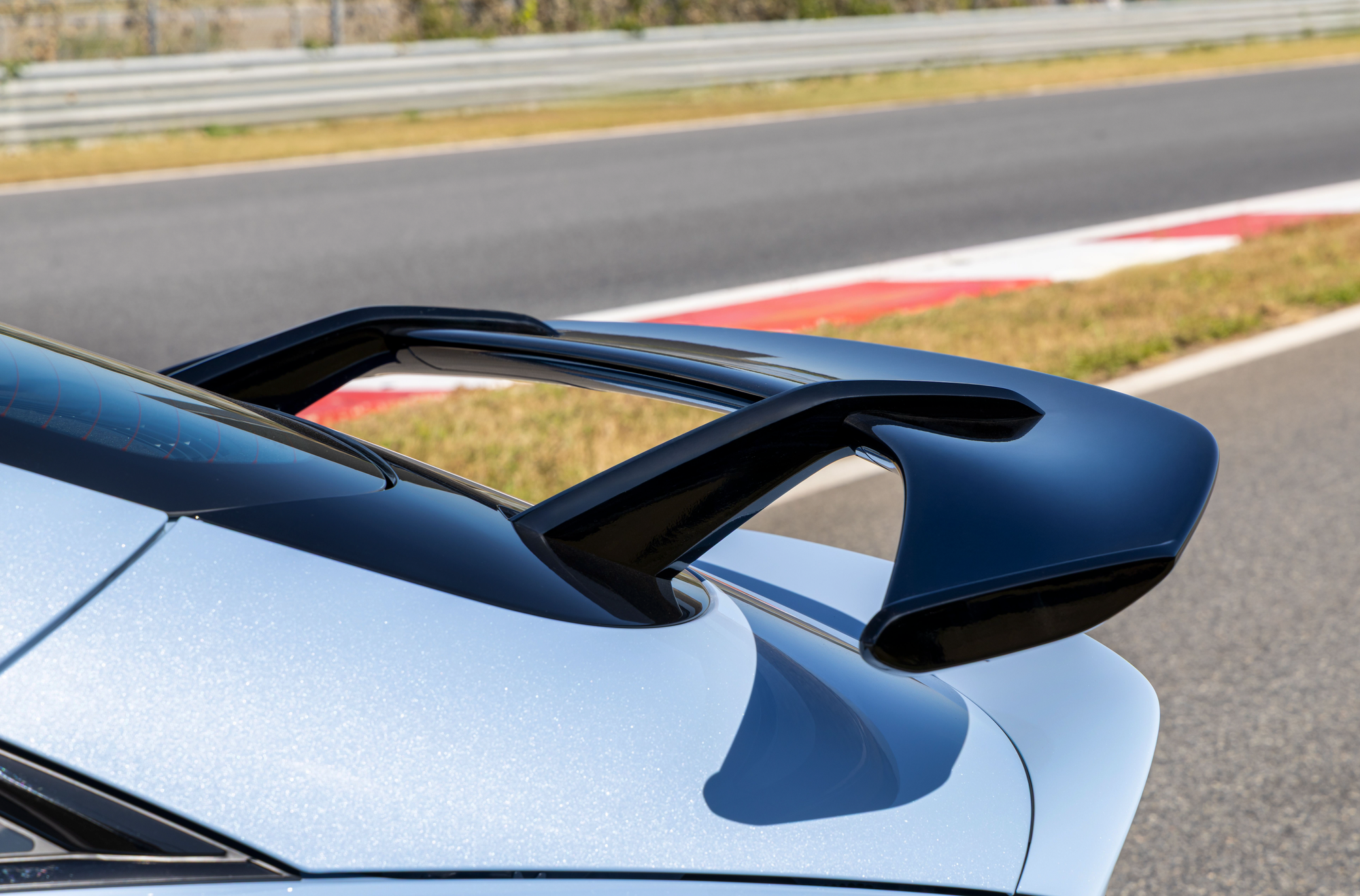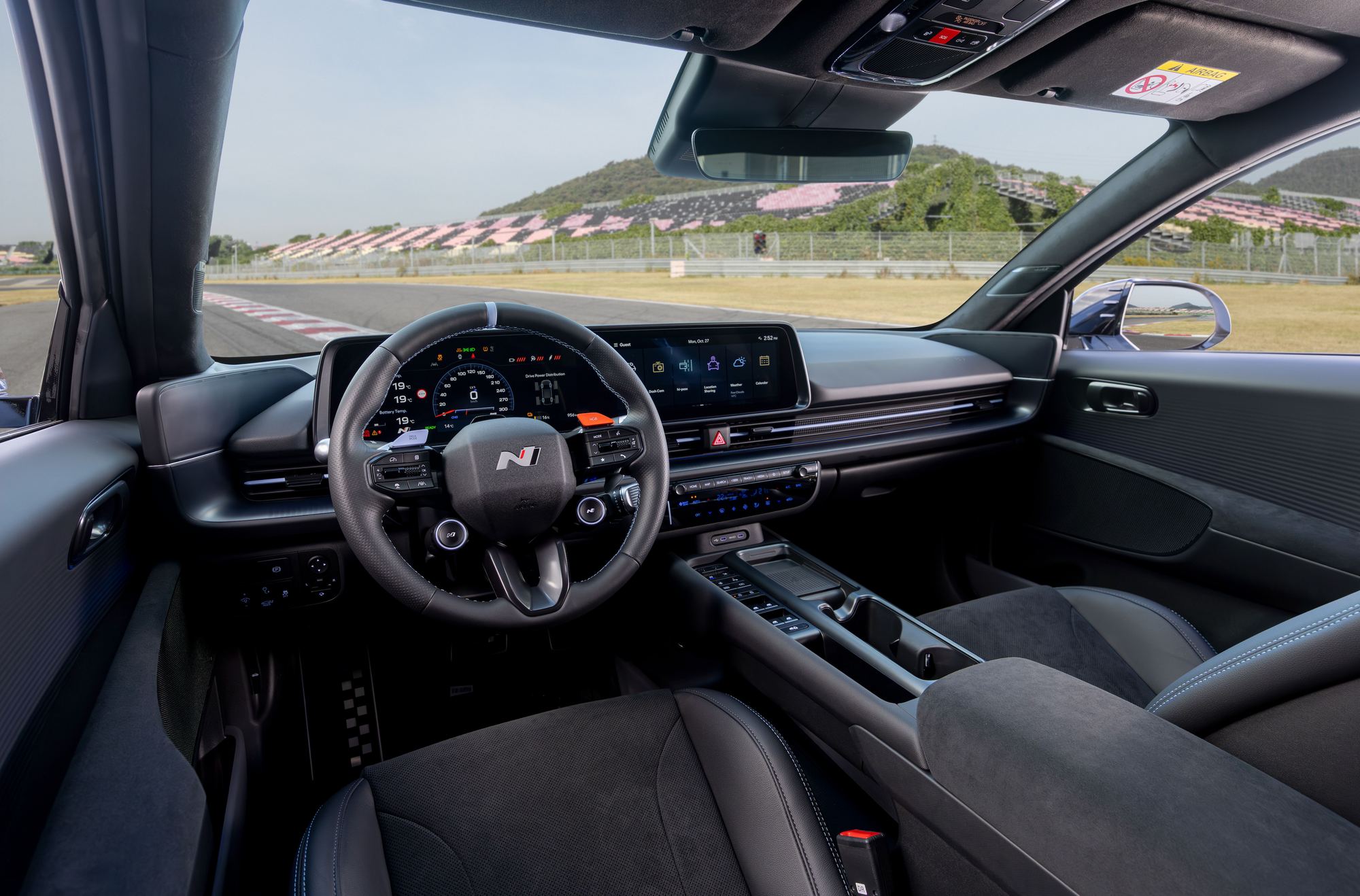 Functional aggression. Swan neck wing for downforce, wider track, stiffened body, bucket seats, N wheel with N1 and N2 hot keys, ambient shift light as a timing cue. Performance Blue as a signature signal. The look serves the lap.