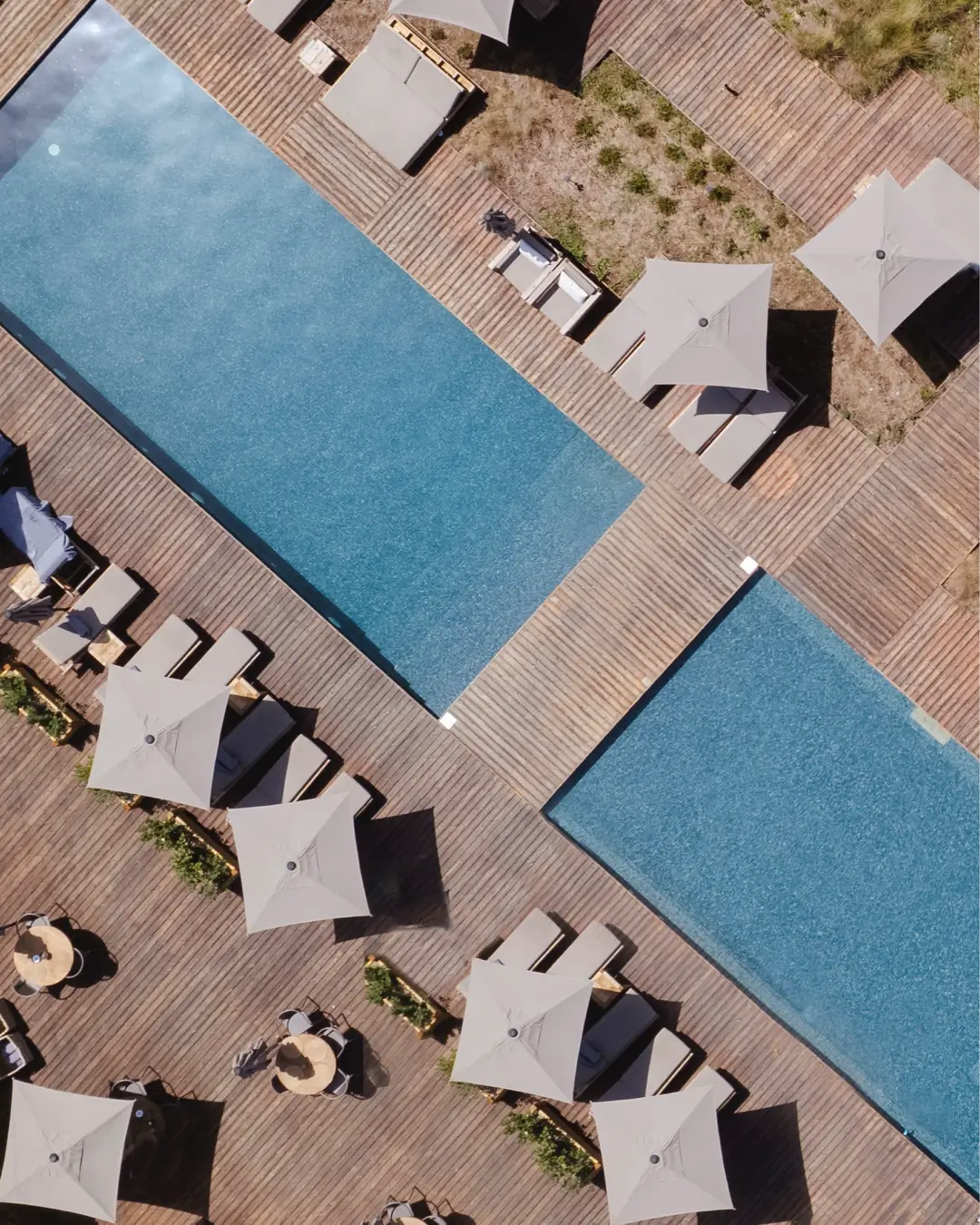 Just outside Lisbon, perched above the surf town of Ericeira, Immerso is a hotel that specializes in making stillness feel like the new status symbol. Built into the hillside, the 37-room property uses design to slow time. Wooden walkways lead to an open-air restaurant, local chefs turn seasonal ingredients into ritual, and the spa feels more like a deep breath than a destination. Every corner is shaped to remind guests how it feels to move without hurry.