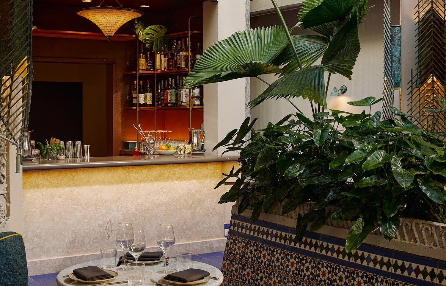Every detail carries the hand of a maker. Unlike glass-box luxury hotels, Mayfair’s appeal is its individuality. No two rooms are alike, and every space is bathed in color and craft. It reclaims emotional luxury through sensory design: peacock blue walls, brass fixtures, carved wood, and tropical light. The hotel’s energy is intimate, eccentric, and unmistakably human.