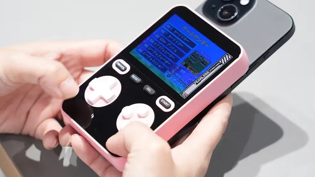 The Mobile Boy is a 5,000 mAh MagSafe power bank from Oscar Japan that doubles as a tiny retro gaming handheld loaded with 300 built-in titles. It snaps to the back of your phone, charges it wirelessly, and gives you a full-color LCD, classic D-pad controls, and Game Boy-style buttons so you can play while you wait. It comes in black, silver, or pink and is currently crowdfunded in Japan at a price point under $60.