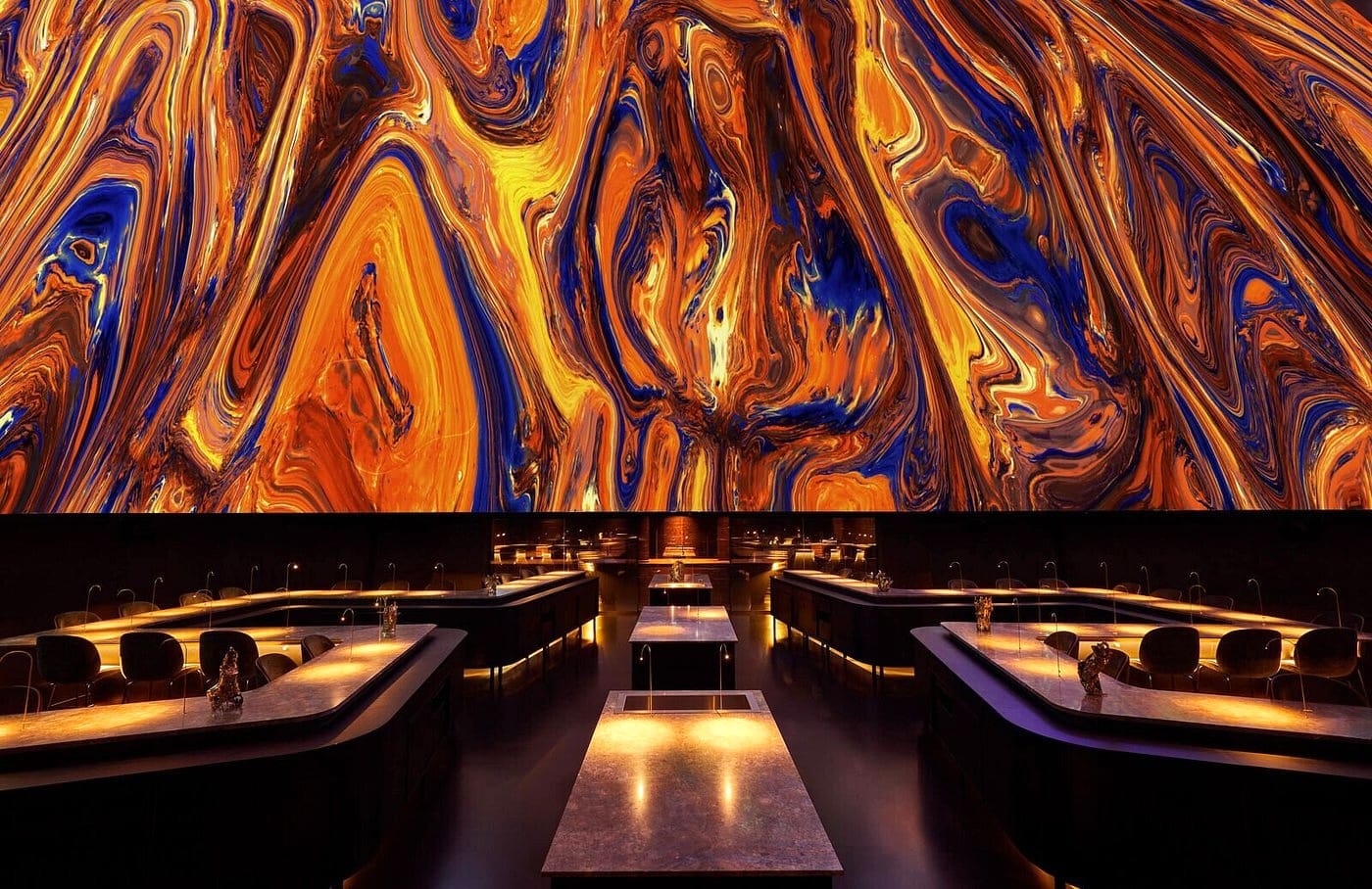 Alchemist in Copenhagen is a dining experience anchored by a fifty-course menu served across multiple rooms over four to six hours. Guests move through a sequence of curated spaces that mix gastronomy with performance, dome projections, installations, and micro-dramas built around each impression.