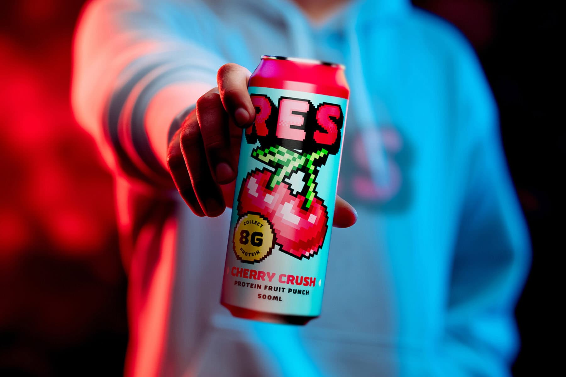 Res is a protein drink targeting gamers, streamers, and creators, positioning protein as a cognitive enhancer rather than a muscle-building supplement. Res differentiates itself by connecting protein to focus and using design as a cultural element.