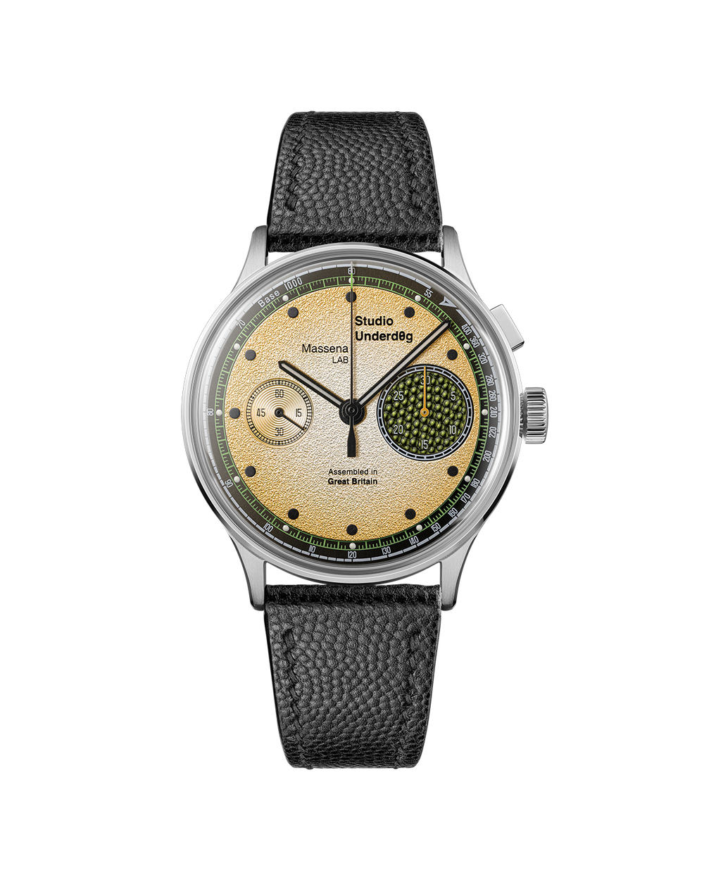 Studio Underd0g and Massena LAB position themselves as the mischief-makers of modern watchmaking. Independent, clever, and unafraid, they break from the sterile perfectionism of legacy Swiss brands. They trade prestige for personality, blending Underd0g’s irreverence with Massena’s credibility to celebrate the joy of watchmaking done with a grin.