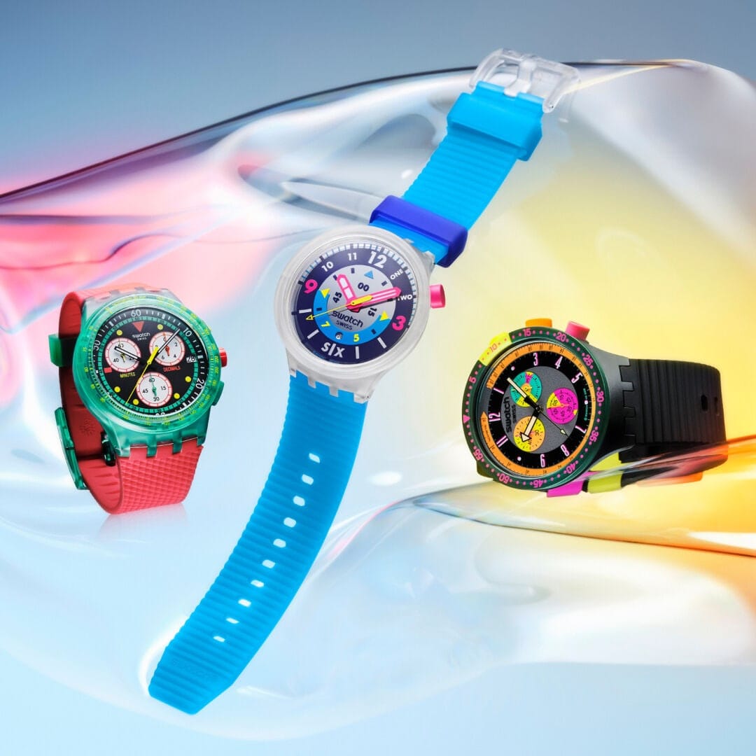 The story leans on archive revival. Swatch digs into its past (the 1994 Aquachrono Seppia) and reimagines it with bigger proportions, louder neon palettes, and a fresh retro-future vibe. The messaging is: “Remember when watches were fun? That feeling is back, and bigger.”