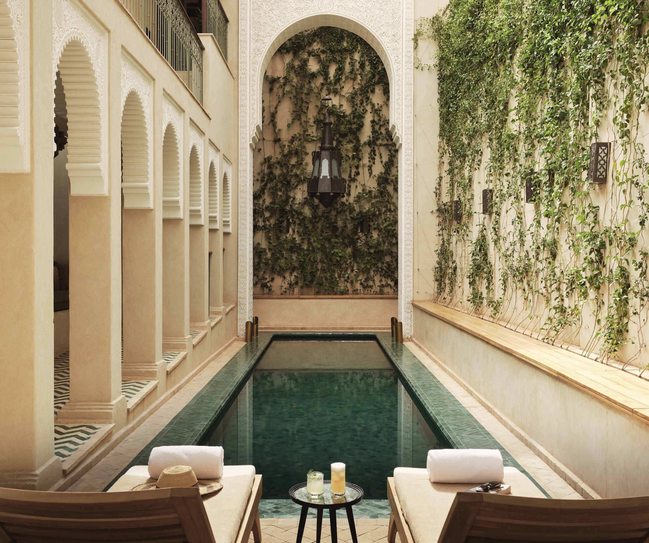Here's how it works: The hotel reimagines the riad as a living gallery, merging seven interconnected homes in the medina into a sanctuary for artists, wanderers, and romantics. Each space blends Moroccan craft and contemporary art, from hand-cut zellige tiles to digital installations. With rooms named after counterculture icons and a collection of over 300 works, Izza blurs the line between hotel and cultural institution.