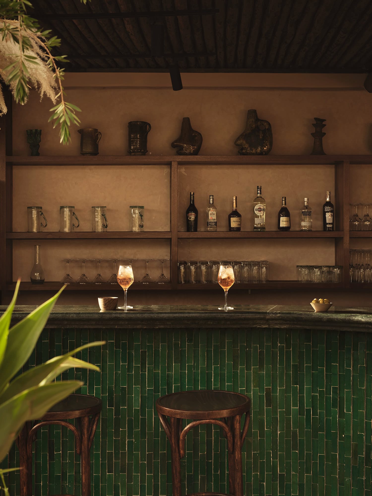 Design serves as narrative. Hand-cut tiles meet digital projections, vintage letters from Saint Laurent sit beside generative art. The visual language blends restraint with maximalism, creating sensory contrast between texture, light, and memory. Izza’s identity down to its typography and scent is built to feel handmade yet forward-looking.
